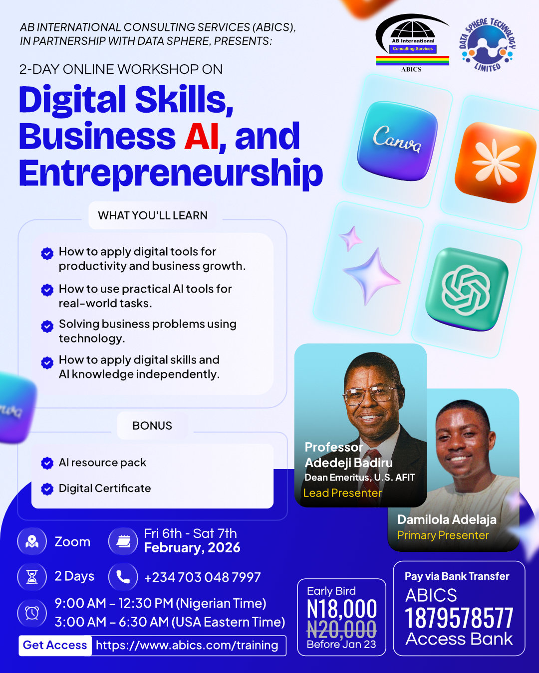 Professor Badiru is the lead consultant at ABICS, with decades of global experience in engineering, education, leadership, and innovation. A former Dean at the U.S. Air Force Institute of Technology, he has authored 40+ books and received numerous awards for his impact in academia, government, and industry.